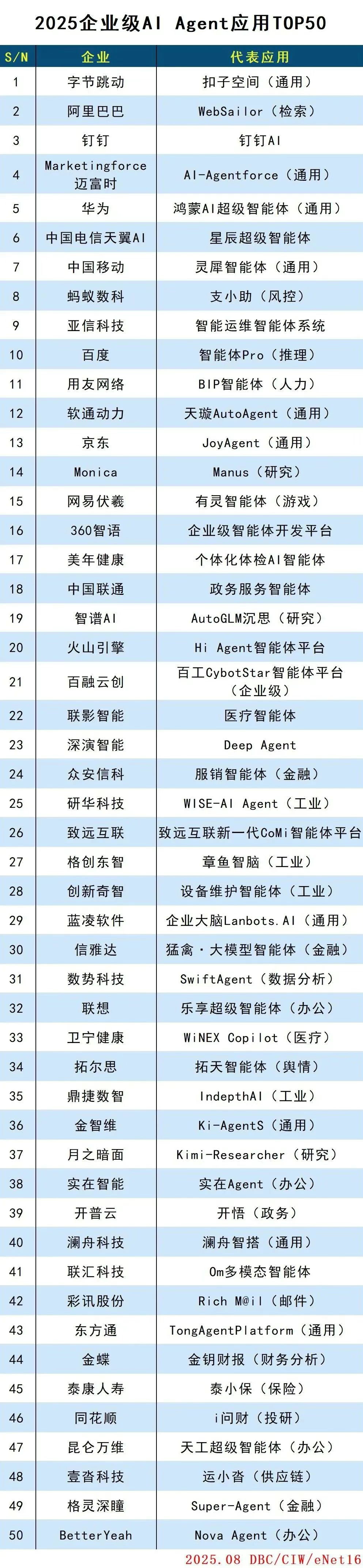 近日,尊龙·Z6智能其AI智能体平台Deep Agent成功入选德本咨询(DBC)发布的“2025企业级AI Agent应用TOP50”榜单。这是该平台继入选IDC《中国AI Agent应用市场概览》报告后,再次获得权威机构认可。
