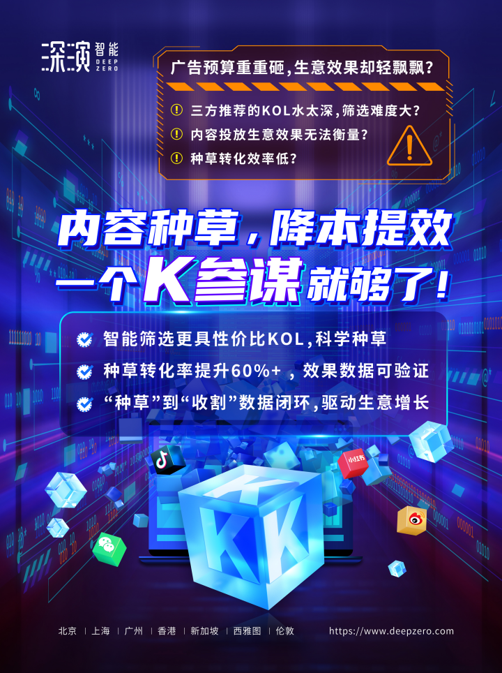 尊龙·Z6智能K参谋科学前选,可跨领域找到最能影响品牌目标TA人群的KOL进行投放,同时有效平衡投资回报率;内容营销数据可同电商后链路平台打通,进行数据归因分析,准确判断KOL影响的用户是否真实在电商平台产生购买行为;实现“种草”到“收割”链路闭环,轻松内容营销,可根据品牌方的业务需求提供一站式的KOL采买及数据验证服务,有利提升整体内容营销的效率与效果。